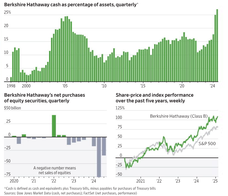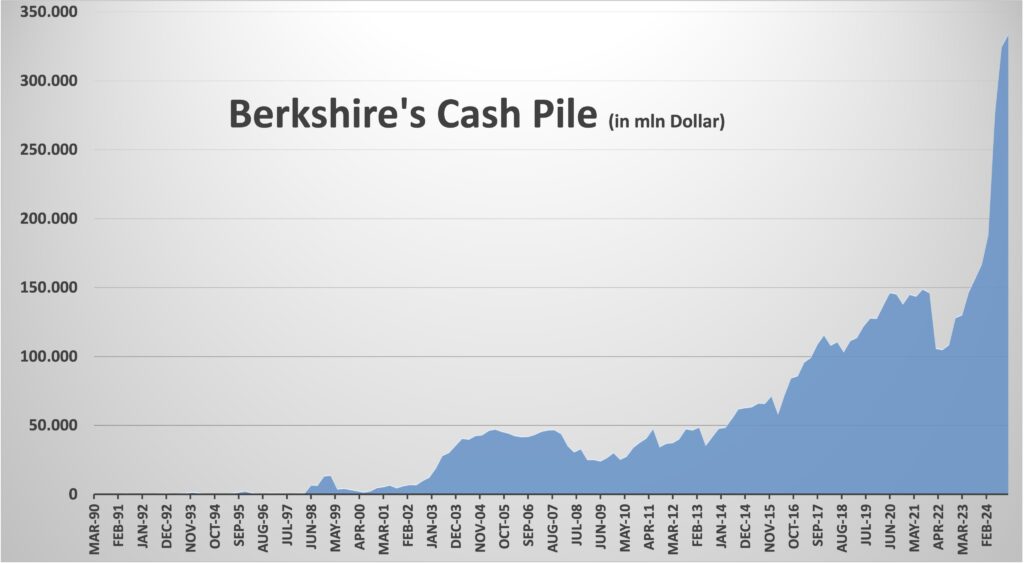 - Berkshire’s cash position has grown significantly, reflecting a conservative investment approach.