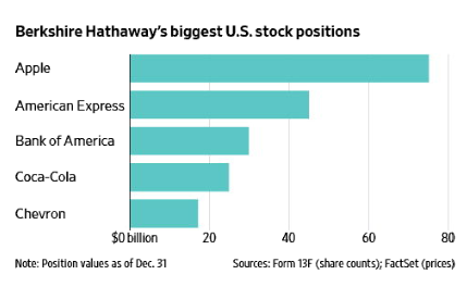 As of December 31, Berkshire Hathaway’s five largest U.S. stock positions reflect its commitment to high-quality, fundamentally strong businesses: