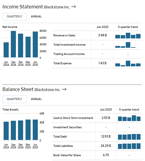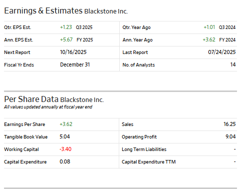 Blackstone Inc. posted revenues of $3.07 billion for the quarter ended June 2025, surpassing the consensus estimate by 8.56%. This compares to year-ago revenues of $2.52 billion. The company has topped consensus revenue estimates four times over the last four quarters.