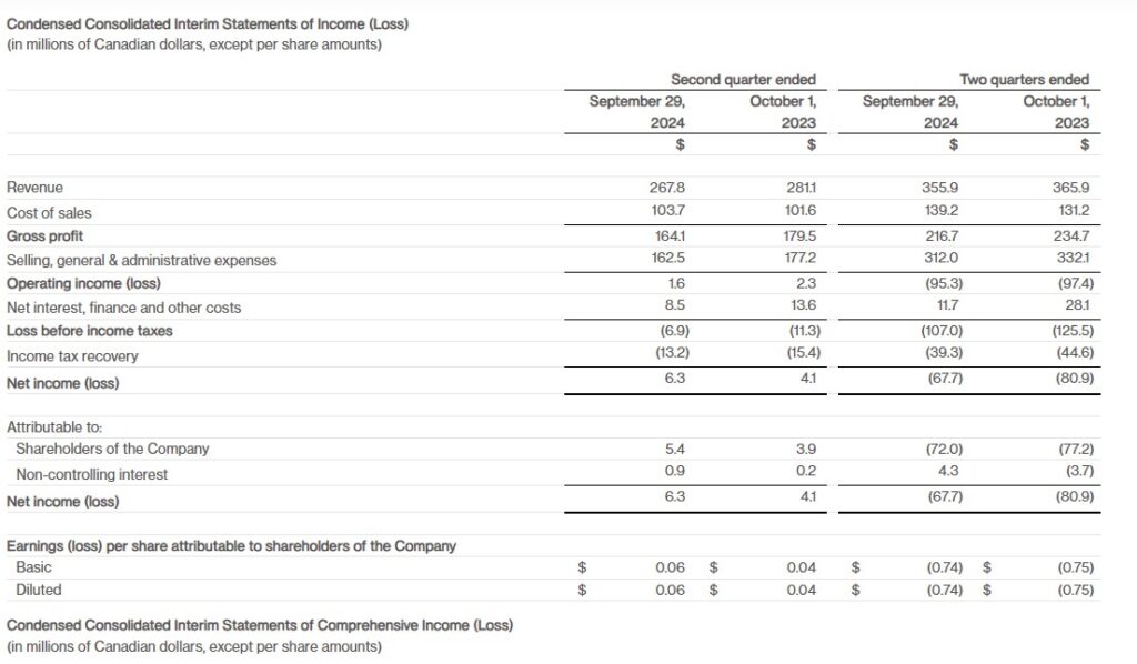 Gross profit decreased 9% to $164.1m. Gross margin for the quarter was 61.3% compared to 63.9% in the second quarter of fiscal 2024 primarily due to a higher proportion of non-Heavyweight down revenue within the product mix.