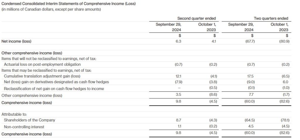 Inventory of $473.4m for the second quarter ended September 29, 2024, was down 9% year-over-year, due to a combination of sales through our DTC, Wholesale, and Other channels, and a temporary reduction in production levels.