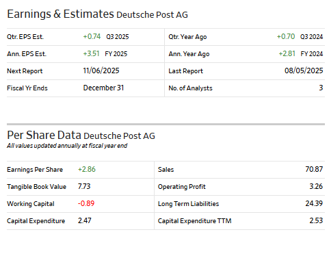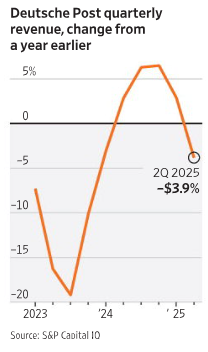DHL reaffirmed its full-year EBIT guidance of more than €6 billion. The company updated its language on trade risks, stating the outlook excludes the impact of a “potential further escalation in tariffs,” a revision from previous wording.