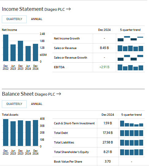 Diageo said it made a full-year net profit of $2.35 billion, down from $3.87 billion a year before, while its pretax profit fell to $3.54 billion from $5.46 billion. Excluding exceptional items, its operating profit was down 0.7% organically at $5.7 billion.