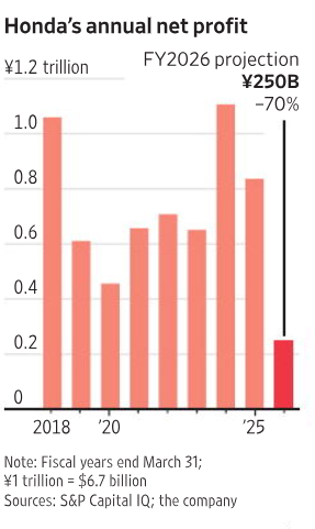 Japanese auto giant Honda missed fiscal fourth-quarter earnings estimates as operating profit plunged 76%, with the company bracing for the full impact of U.S. tariffs.
