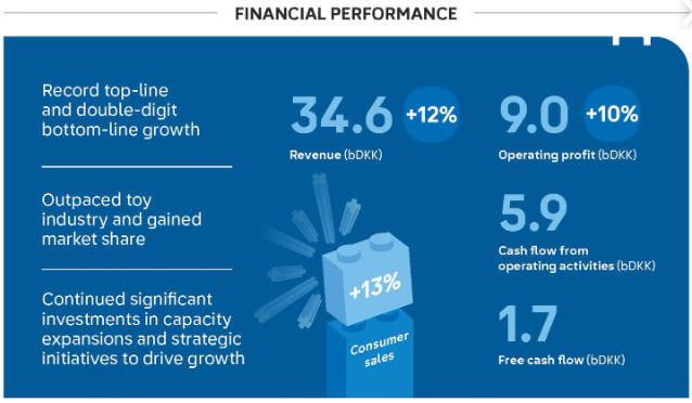 The company reported a record 34.6 billion Danish kroner, or $5.4 billion, in revenue as part of its biannual earnings report . Operating profit rose 10% year over year to 9 billion Danish kroner, or $1.4 billion, the company said.