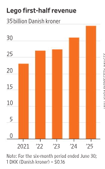 The brick maker launched 314 new sets during the first six months of the year, another record high. Lego has steadily added new product to its portfolio, branching out into home decor with wall art sets. It has also added new license partners and released sets tied to animated children’s program “Bluey” and fan-favorite anime “One Piece.”