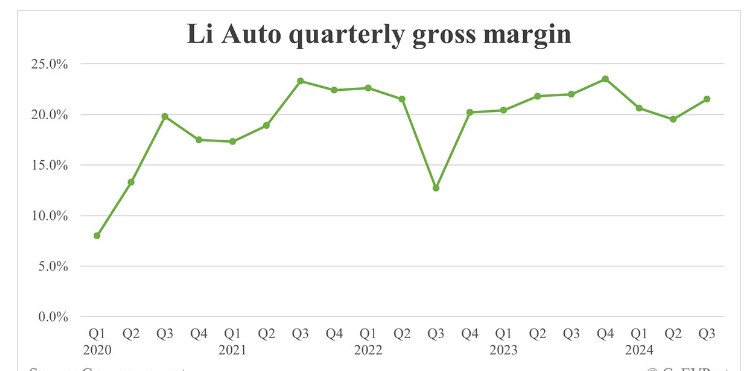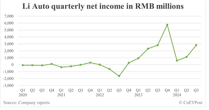 Li Auto reported vehicle sales of RMB 41.3 billion in the third quarter, an increase of 22.9 percent from RMB 33.6 billion in the third quarter of 2023 and an increase of 36.3 percent from RMB 30.3 billion in the second quarter of 2024.