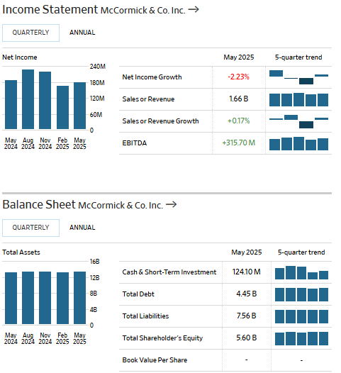 McCormick exited the quarter with cash and cash equivalents of $124.1 million, long-term debt of $3,099.3 million and total shareholders’ equity of $5,630.4 million. In the six months ended May 31, 2025, net cash provided by operating activities was $161.4 million.