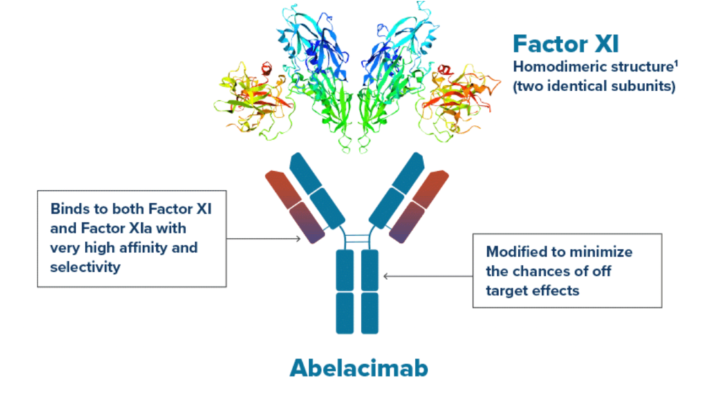 Abelacimab, an investigational anti-clotting drug classified as a factor XI inhibitor, is under phase III development.