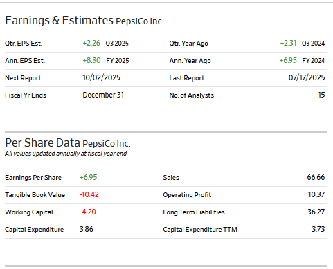 Pepsi reiterated its full-year outlook. It still expects its core constant currency earnings per share to be roughly unchanged from the prior year and organic revenue to grow by a low single-digit percentage.