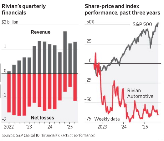 American manufacturer Rivian Automotive, Inc. (NASDAQ: RIVN) announced its second-quarter 2025 financial results. Following its second quarter of gross profit in Q1 2025, Rivian received a $1 billion equity investment from Volkswagen Group on June 30 at an effective price of $19.42 which represents a 33% premium to the $14.56 30-trading day volume-weighted average stock price. The investment is part of the up to $5.8 billion agreement associated with the Rivian and Volkswagen Group Technology joint venture.