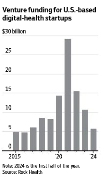 Venture capitalists during the pandemic pumped billions of dollars into startups applying digital technologies to healthcare. Making a return on those investments has proven difficult.