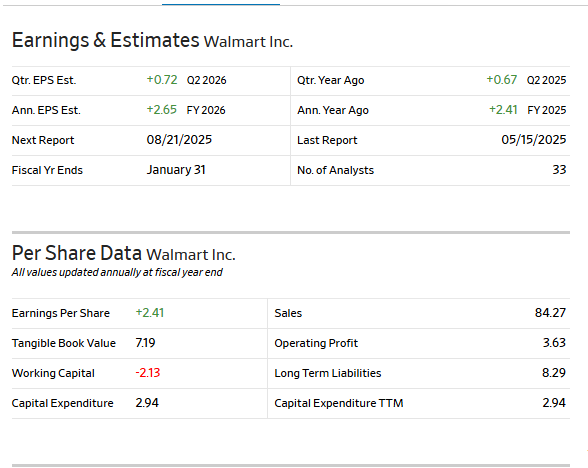 You can visit Walmart Investor website https://corporate.walmart.com/news/2025/05/15/walmart-releases-q1-fy26-earnings