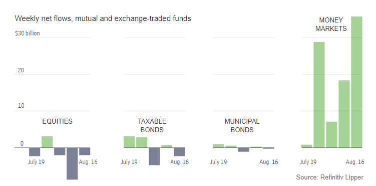 Investors have yanked $11.6 billion from stock funds on a net basis over the past five weeks, while putting a net $91.1 billion into money-market funds, according to Refinitiv.