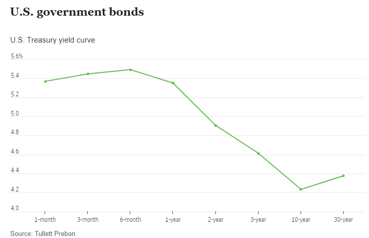 The yield curve is still inverted, meaning short-term bonds yield more than longer ones: The one-month Treasury bill yields 5.37%, while the 30-year bond offers just 4.38%. The advantage of the longer-dated securities is the yields are locked in for longer, in case interest rates start falling again.