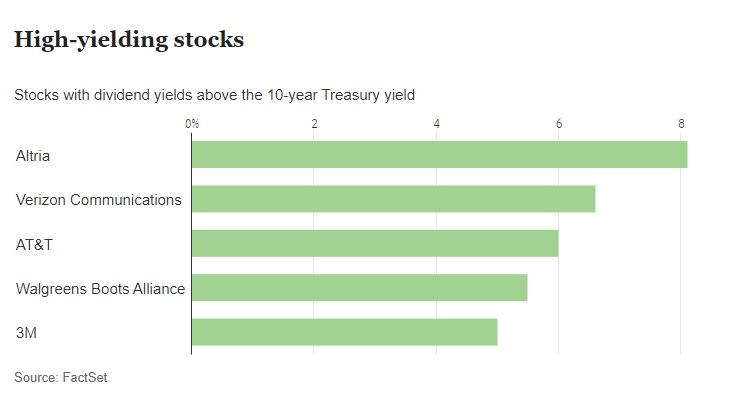 Still, several household names, like tobacco company Altria and telecom giants Verizon Communications and AT&T, offer comparatively high dividend payouts. Companies typically pay large dividends or buy back stock when they don’t see better opportunities to invest their money in growth projects, so high dividend payers tend to be older, slow-growing firms. Payouts can rise or fall based on each company’s financial performance and investment priorities, so they are riskier yield options than a government bond.