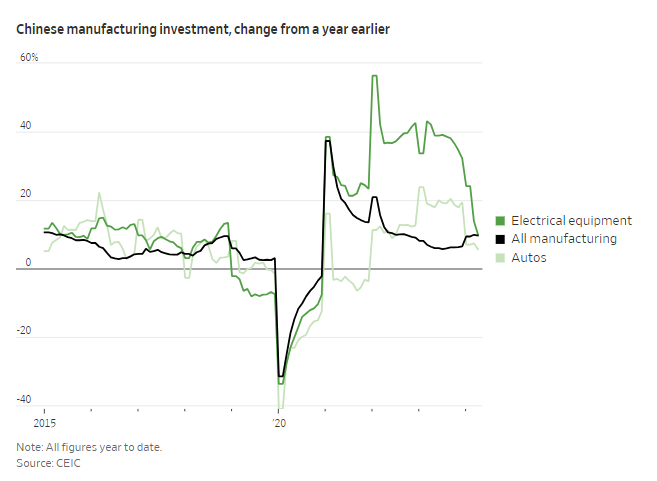 Chinese companies have invested more in manufacturing than usual, even though domestic demand and exports have often been weak. The trend has been especially stark for certain sectors that are favored by Beijing and often benefit from subsidies, such as EVs.